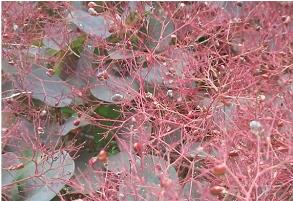 In Spring they come into bloom with a cloud of purple smoke. The "flowers" are so light and airy they appear to be just a cloud.