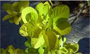 Our smoke tree is currently blooming in an obscure corner of the nursery. Its worth a look! Smoke trees are typically dark red small trees or large shrubs to about 12 feet, Golden Spirite is a lime green variety, They are perfect for a patio or a tree near the front entry.