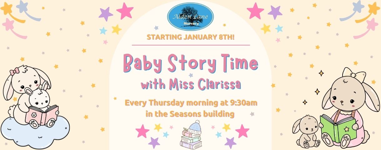 Every week Miss Clarissa brings you a story for the babies. If you are a new parent then you probably want to get out of the house. So come to Alden Lane for stories and songs exclusivly for you and your little one. Meet other local new parents. If you know a new parent, please invite them!