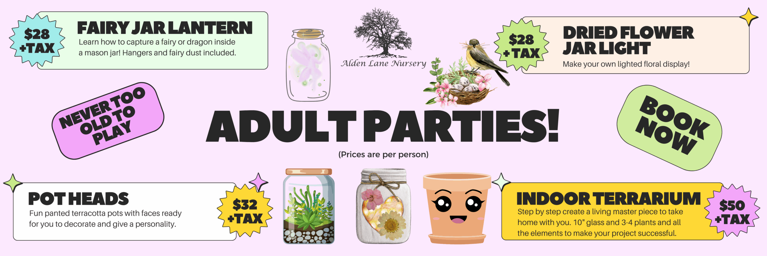 Alden Lane Nursery provides a beautiful venue to have an activity that is packed full of fun for everyone! Put away your games and phones and join us for outdoor fun in a natural environment.