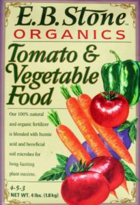 Apply fertilizer monthly. We recommend Master’s Tomato & Vegetable Food or E.B. Stone Organic Tomato & Vegetable Food. Don’t fertilize a thirsty plant — water your garden thoroughly at least 4 hours before feeding. Apply fertilizer and water again. During the summer it is important to be strategic when you fertilize. Try to do it on days where the temperatures are not expected to be above 85 or 90 degrees. You don’t want the fertilizer to burn your plants.